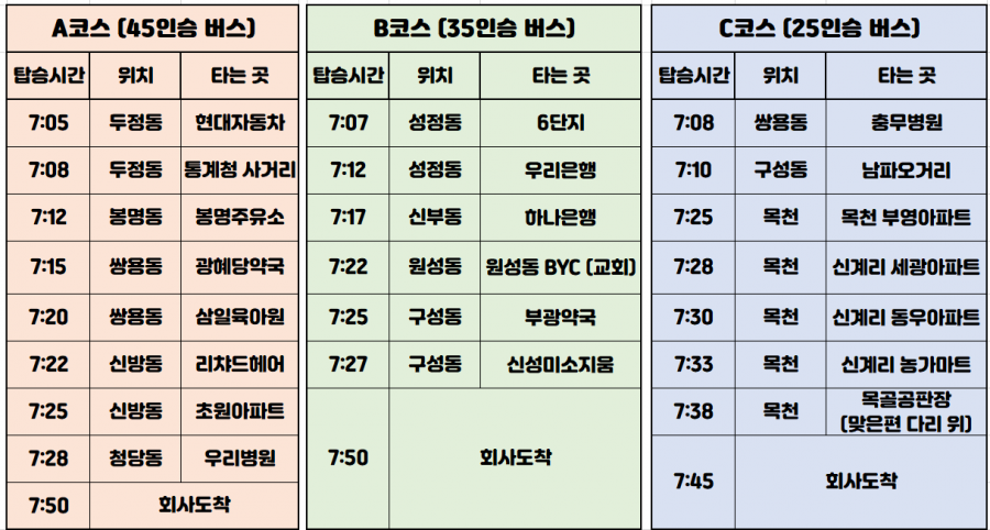 -통근버스 천안 3대 / 조치원 1대